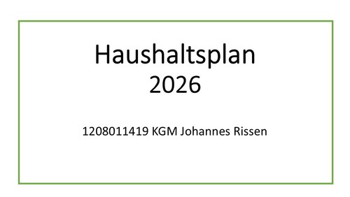 Für alle Interessierten liegt der Haushaltsplan für 2026 in der Zeit vom 27.4. bis 22.5.2026 im Gemeindebüro zur Einsichtnahme aus.